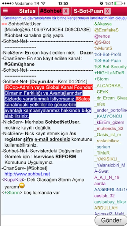 Chat.Net is one of the largest written chat sites in Turkey. Thanks to this application, you will now be able to seamlessly connect to Chat.Net from your mobile devices and join the chat environment.
