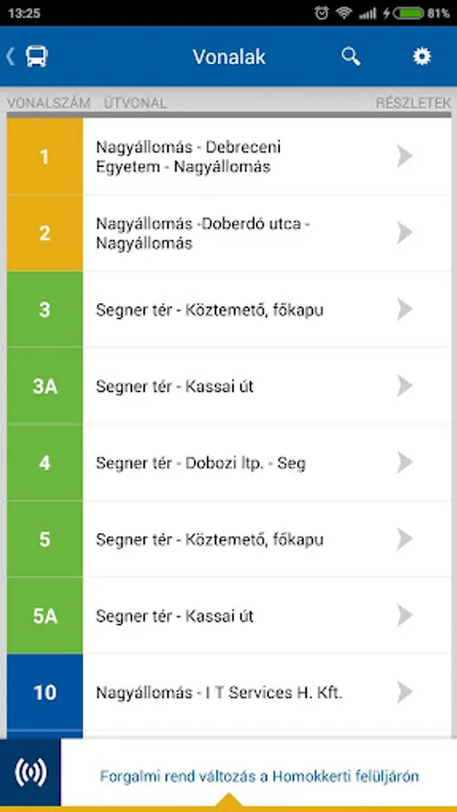 Official Debrecen Public transit scheduling and real-time dynamic display.