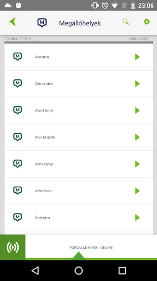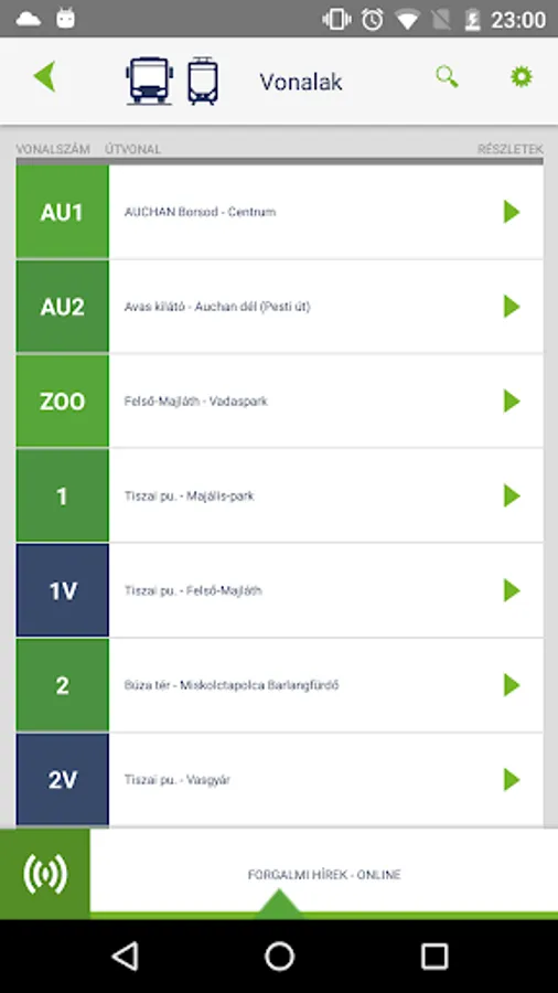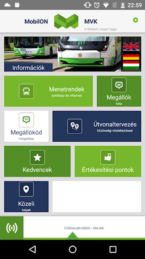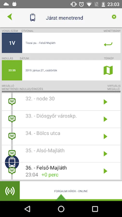 The application is able to give an accurate picture of the current position of active flights and informs them about their arrival at the stops - indicating any data that may differ from the schedule. The official program based on the official database provided by MVK Zrt. Is always up to date with the latest local timetable data from Miskolc.