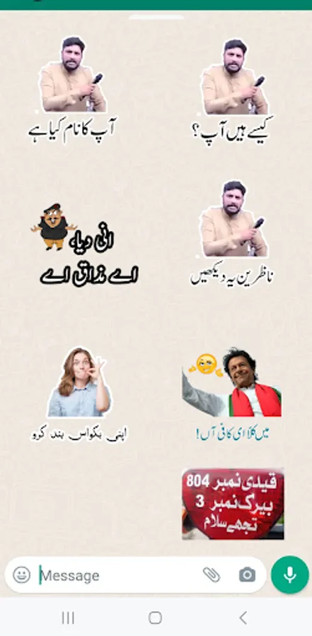 Urdu Stickers app is very funny and free for all. It contains a massive collection of crazy and funny Urdu Stickers . This app contains hot trending dialogues Urdu stickers that can make you, your friends and family in daily social life and social chatting.