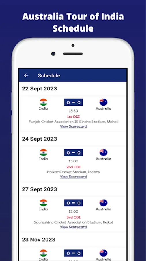 If you are fan of cricket, then you are at right place. This app is for you. This app contains the complete schedule of Australia vs India cricket 2023.
