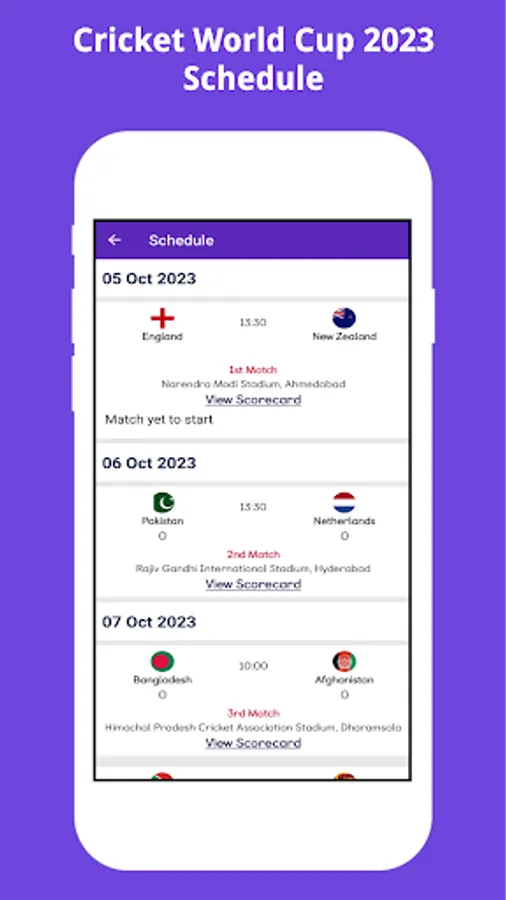 This app contains complete Schedule of Cricket World Cup 2023.
