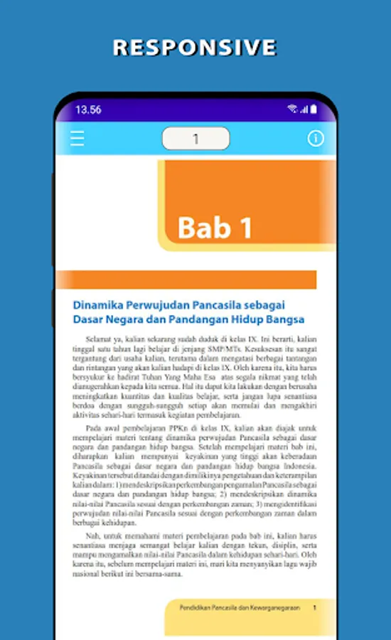 Electronic School Book (BSE) PPKN SMP / MTs Class 9 Curriculum 2013. This application is made to make it easier for students to learn Pancasila and Citizenship Education anywhere and anytime.