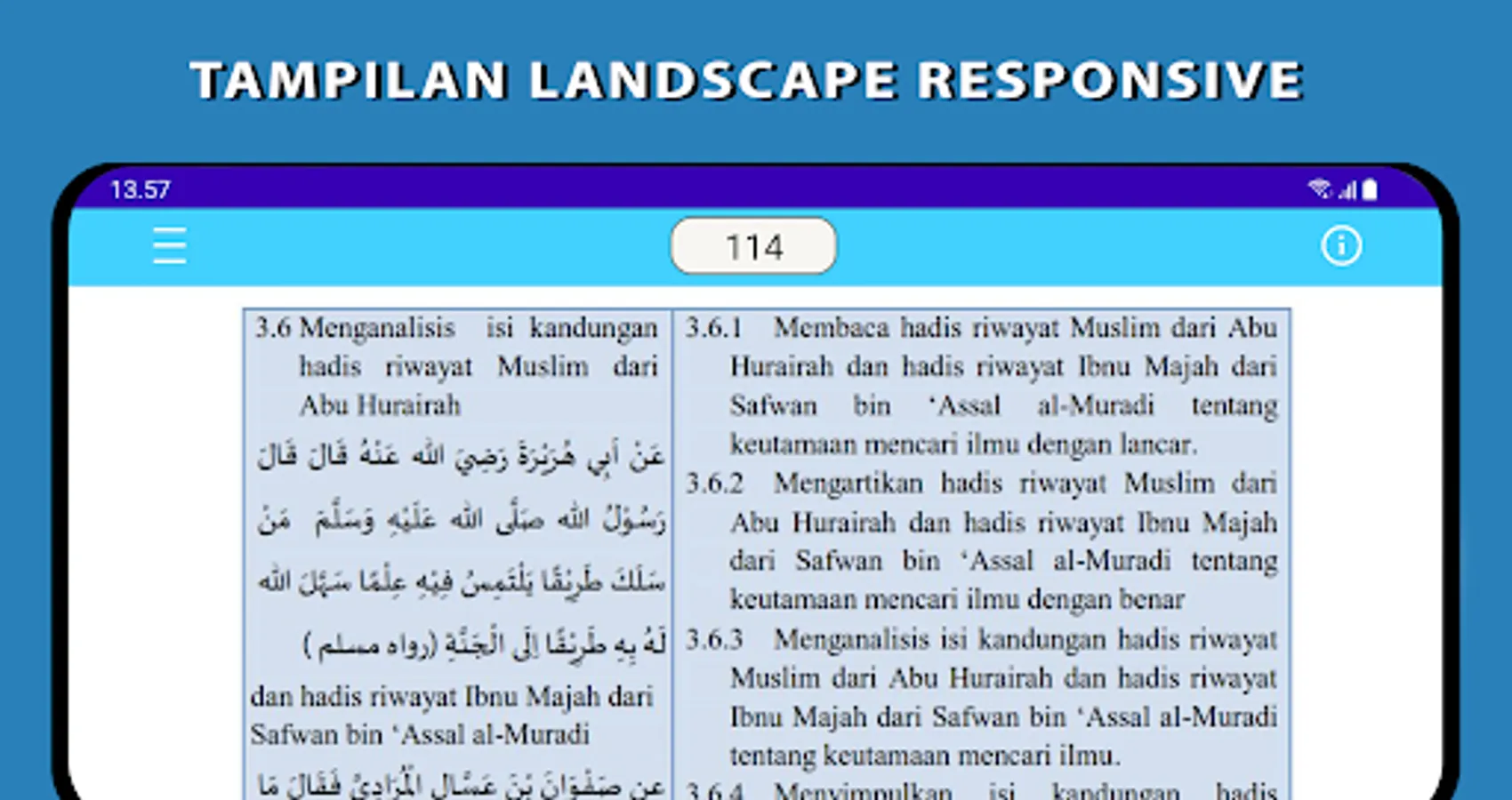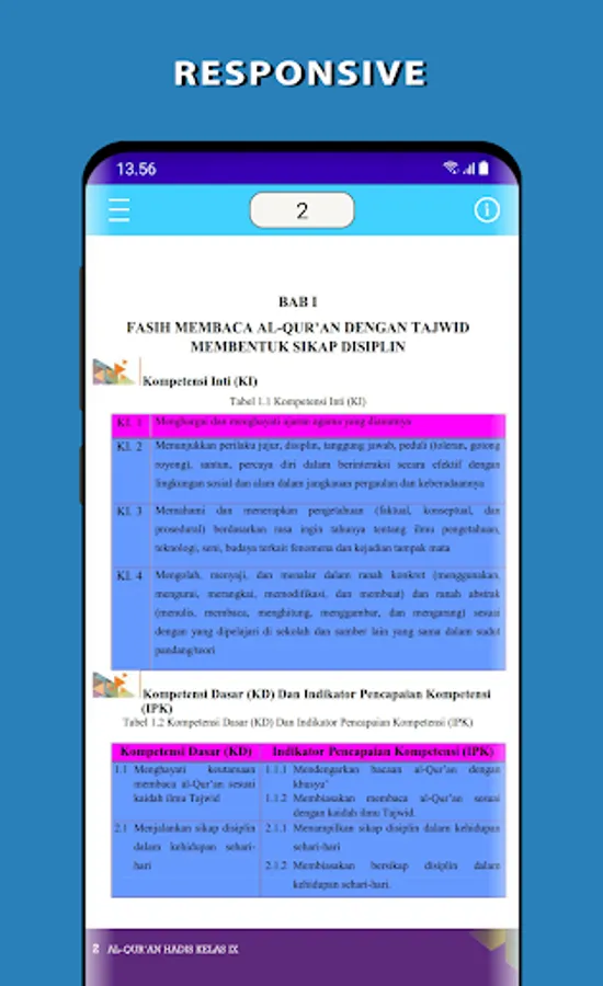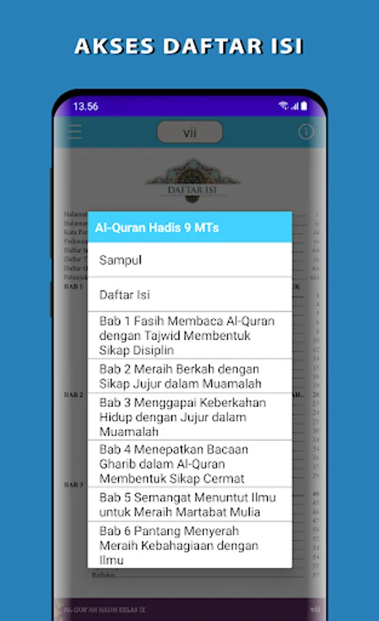 Electronic School Book (BSE) Al-Qur'an Hadith Grade 9 Madrasah Tsanawiyah (MTs). This application is made to make it easier for students to learn anywhere and anytime.