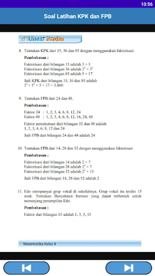 This application contains an answer key and discussion of multiple choice questions for the description of each chapter based on the Mathematics student book Class 4 Curriculum 2013 Revised Edition 2018.