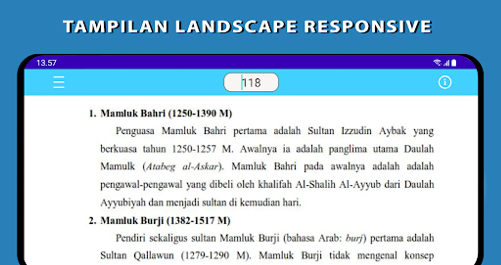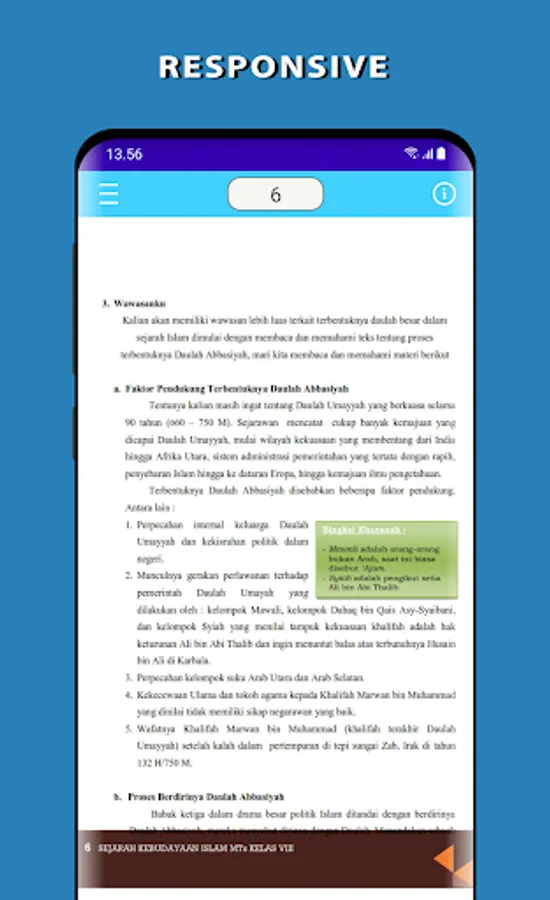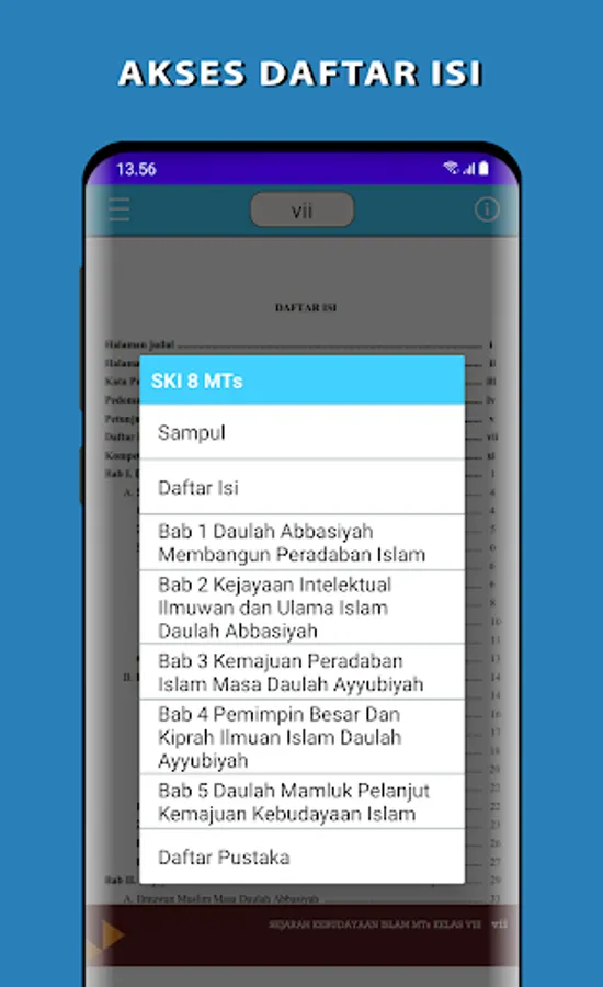 Electronic School Book (BSE) History of Islamic Culture Class (SKI) VIII Madrasah Tsanawiyah (MTs). This application is made to make it easier for students to learn SKI anywhere and anytime.