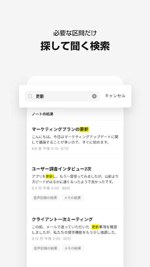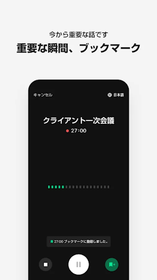 If you find it important while recording, please bookmark it. You can easily find important parts from recorded audio files. You can also use text search to find notes that contain keywords from multiple notes, and you can also play audio from the location found by text search.