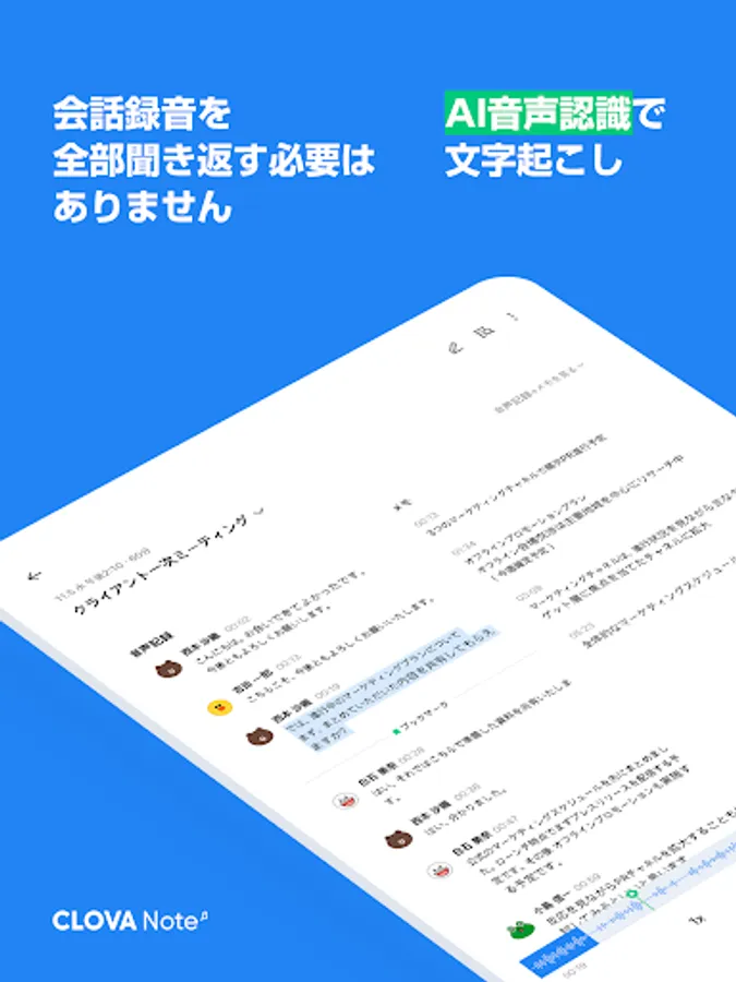 LINE's AI technology brand "LINE CLOVA" aims to be a human-friendly AI that is close to people, and utilizes high-quality AI technology cultivated through research and development in a wide range of technical fields to realize an excellent user experience. CLOVA Note was developed with the hope that everyone will be able to use AI close to them.