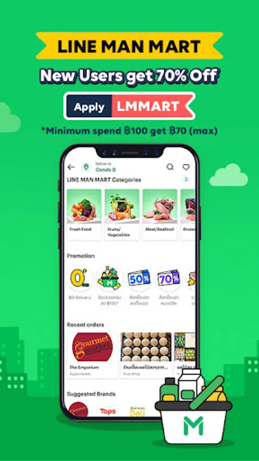LINE MAN your number one supporter. More benefits, with integrated half price co-pay and “The more you spend, the more you get” campaign. Delivery fee starts at 0 baht and pays for meals along with up to 60% discount code. Download now.