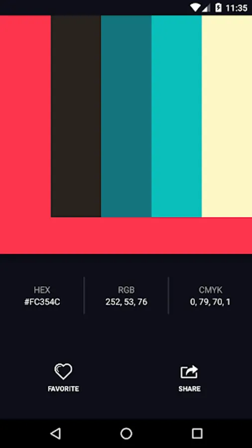 Included are the HEX, RGB and CMYK color values which you can quickly share for easy reference.