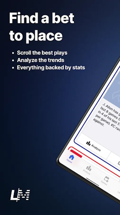 We believe it's about time that advanced analytics became accessible. Linemate is built to support research around your busy lifestyle. An abundance of bet types to choose from with minimal research has many sports fans trusting anything but themselves. That's where we come in. Transforming advanced game-level statistics into clear and informed betting insight. Save time and save money; in one app.