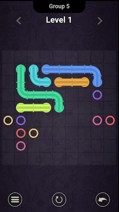 Same Color Dots - Match Puzzle However, pipes may not intersect. Difficulty is determined by the size of the grid, ranging from 5x5 to 14x14 squares. The game also contains a time trial mode