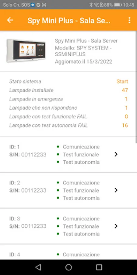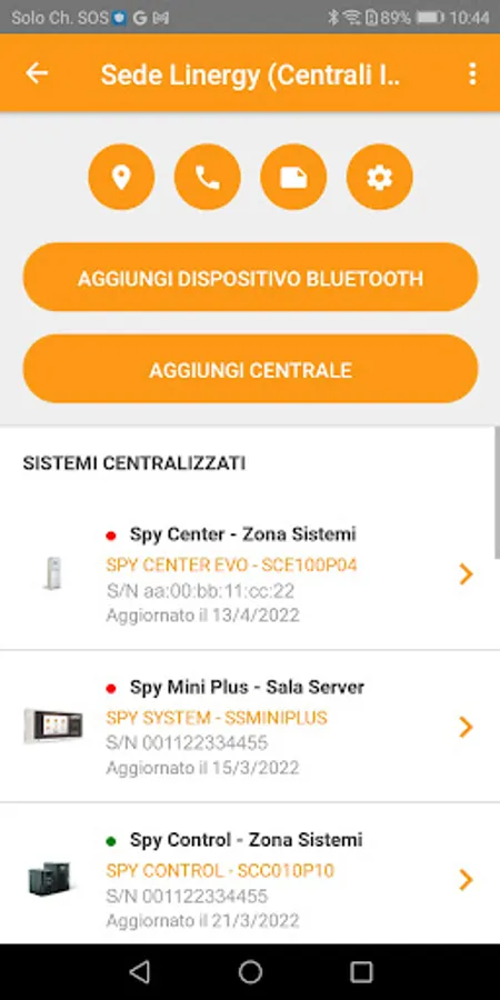 Through the Spy Manager app it is possible to acquire the emergency system devices which will also be automatically stored in the cloud for remote status display.