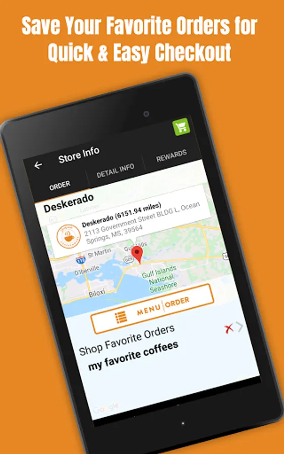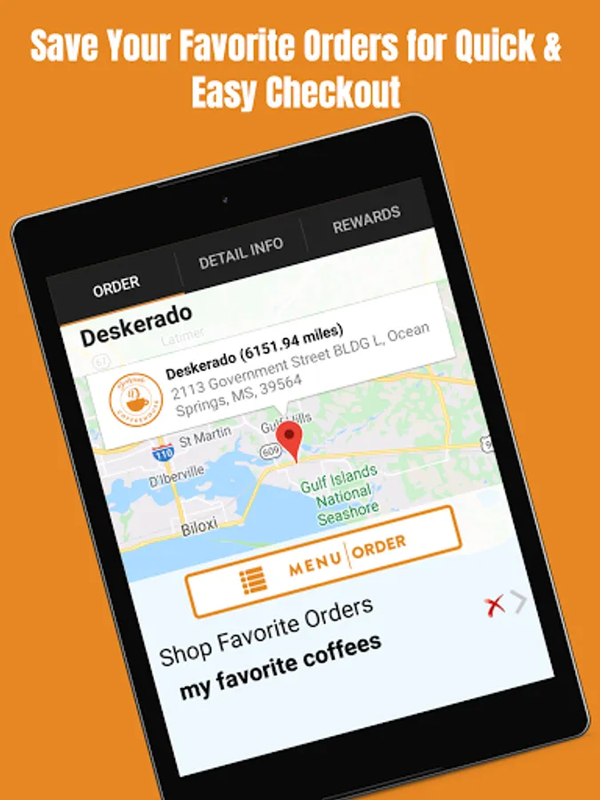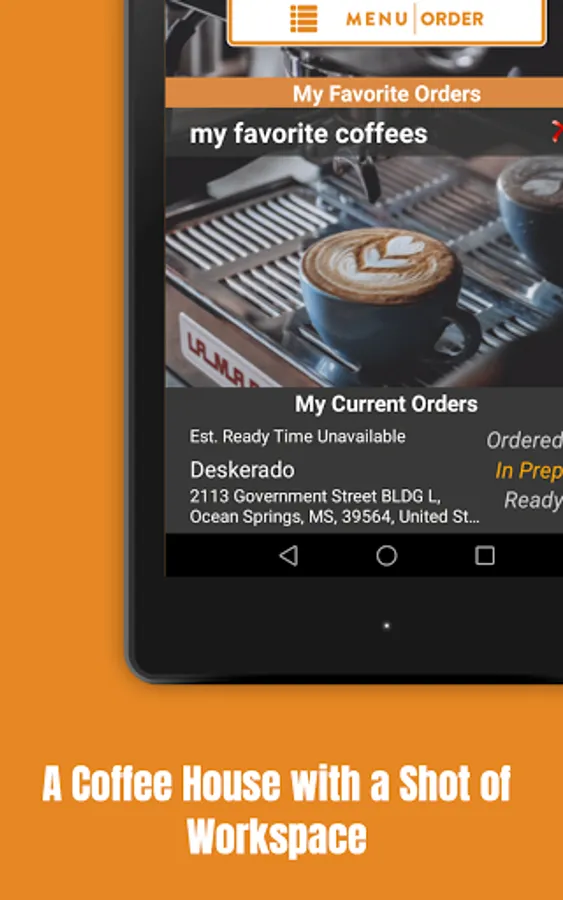The Deskerado® app allows you to order ahead for takeout as well as join our loyalty program, receive promotions, store your favorite orders and more!
