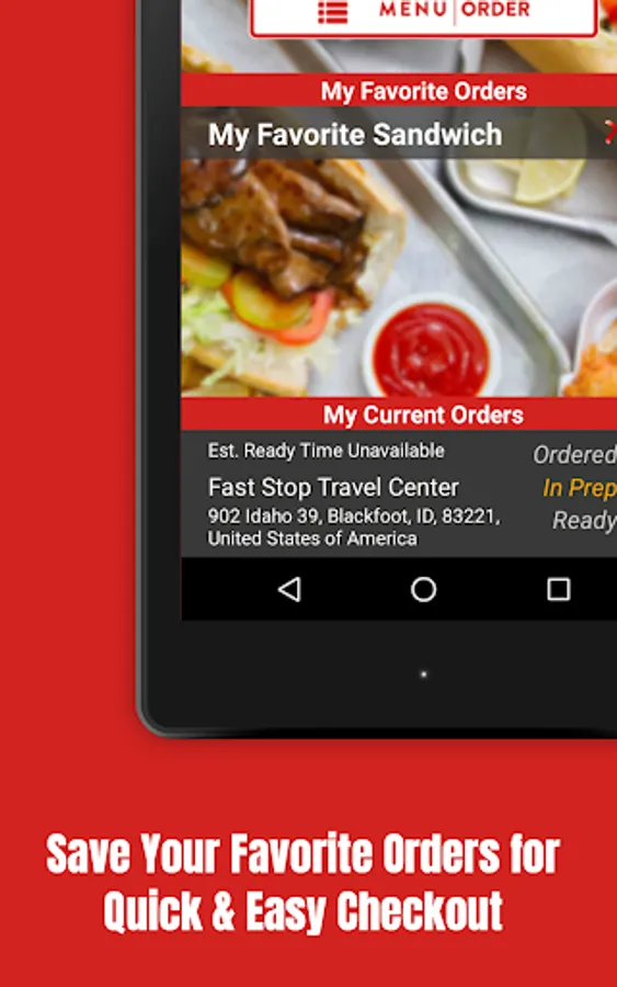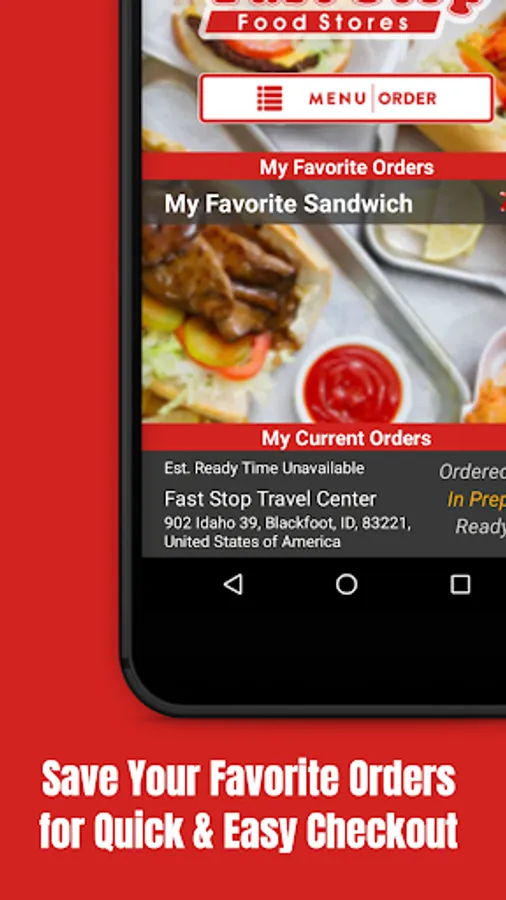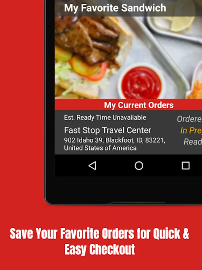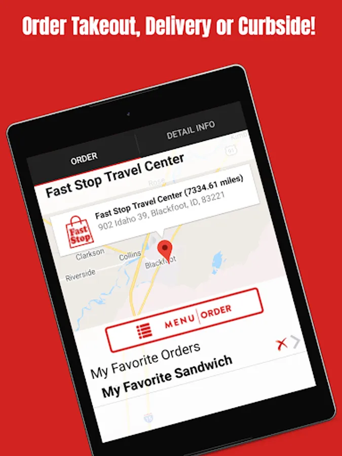 The Fast Stop app allows you to order your food ahead of time. You can also store your favorite orders and payment methods for quick and easy ordering!