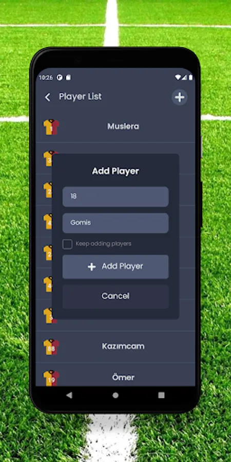Customize your team with infinite colors, different types of jerseys, fields, and formations.