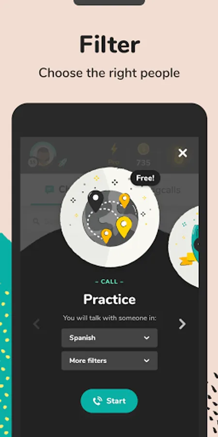 All you have to do is press the call button and we will find you a person who will help you learn and practice the language of your choice in that very moment. After the conversation you will receive feedback in terms of grammar, pronunciation and fluency ๐ฌ so you can always see how fast you are learning and progressing. Also, If you had a pleasant experience give your practicing partner a like after the call. If they like you back then you will both have the ability to chat and practice again at any time. Just as if you were chatting with your friends in a regular messaging platform.