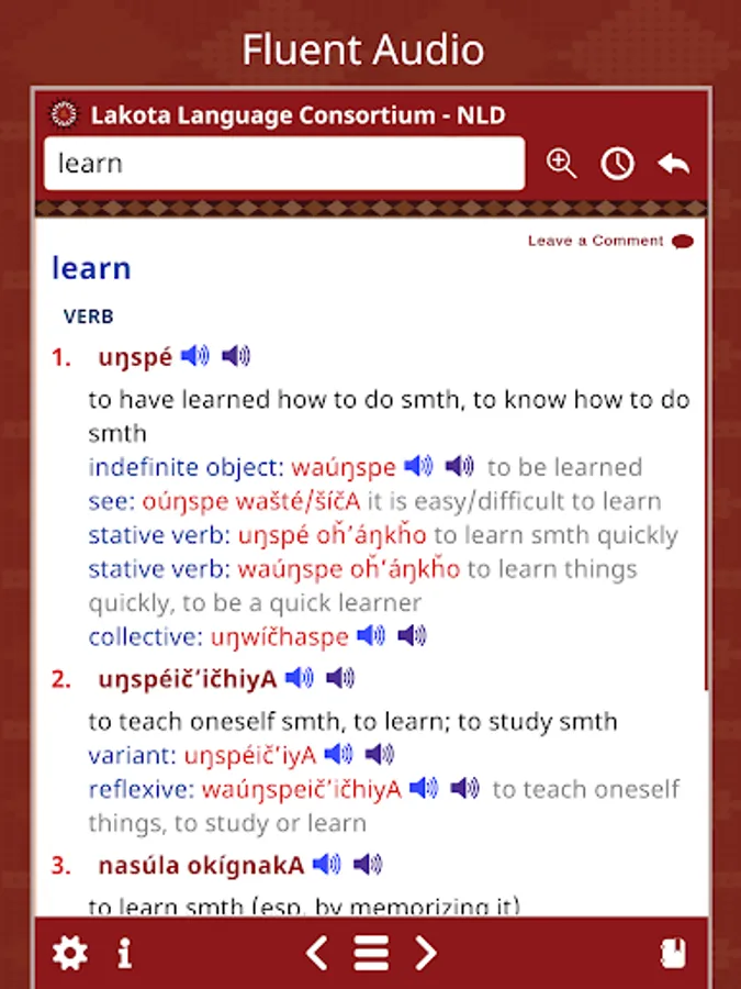 The New Lakota Dictionary (NLD) Mobile App is the best way to look up Lakota words, hear pronunciation, and view thousands of example sentences while on the go. It’s the ultimate electronic Lakota learning and reference tool.