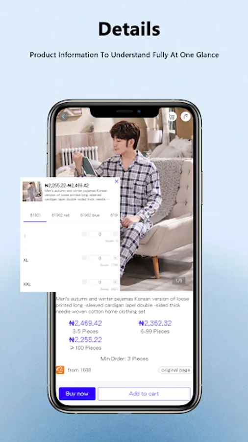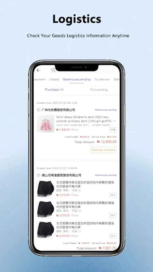 1、Purchase: User can buy all goods from 1688,Taobao/Tmall,Pinduoduo,Jingdong etc. online shopping source in China through our APP, everything is exactly the same as original sources. Users just choose the goods and place orders, we have professional buying team to help you buy goods from original sources.it will resolve all problem during purchase goods,such as visit to different shopping website frequently,complicated payment methods,difficulty communication and so on.