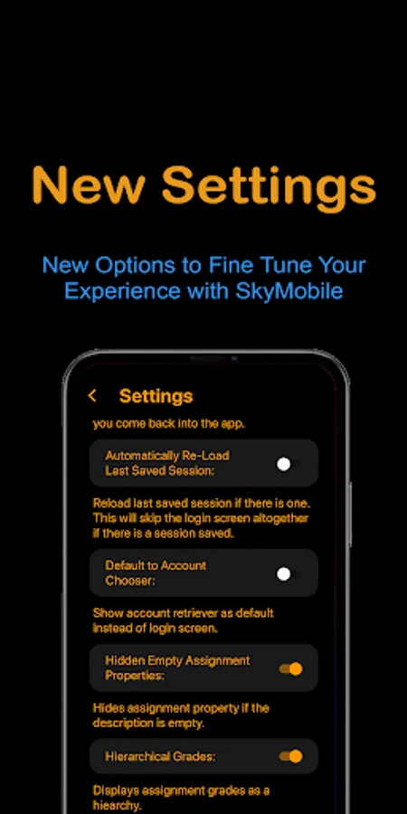 SkyMobile has an extensive settings menu to allow you to customize many aspects of the app.