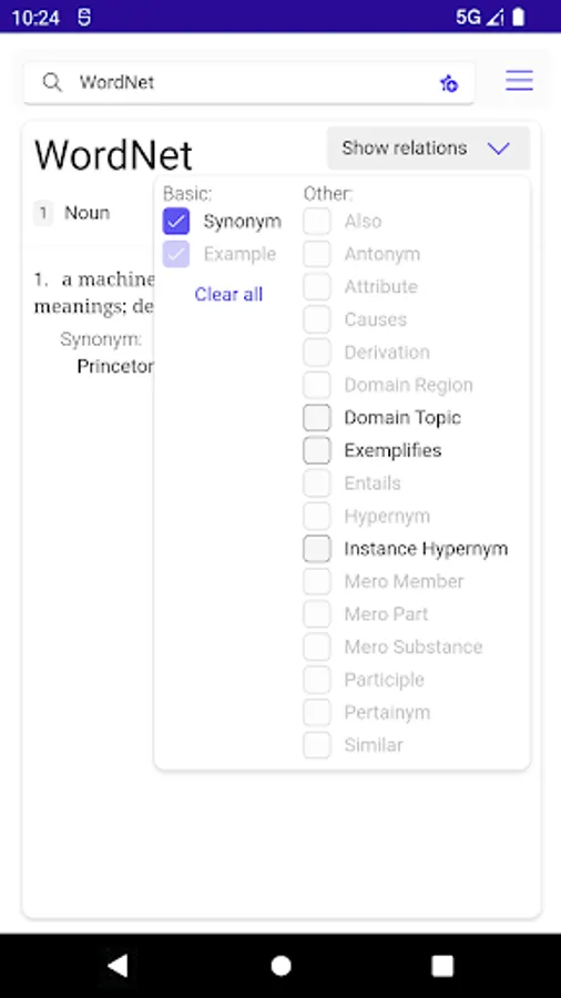 Parvis is an offline English dictionary and thesaurus based on Open English WordNet (en-word.net).