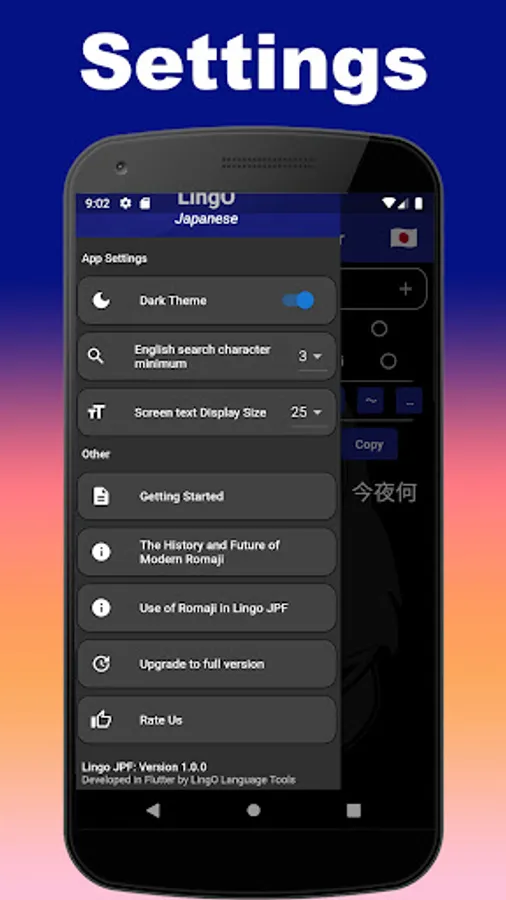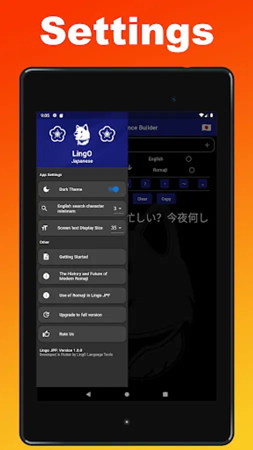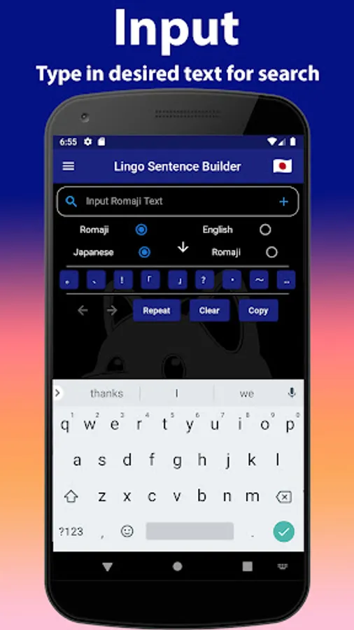 Lingo JPF is a free version of the definitive Japanese Language Romanization input tool to assist speakers who struggle with keyboard text input and spelling. It can also be used as a great learning tool & dictionary- all contained within this single app on your device- on the go & when you need it- without the need for any type of data or wifi connection!!!