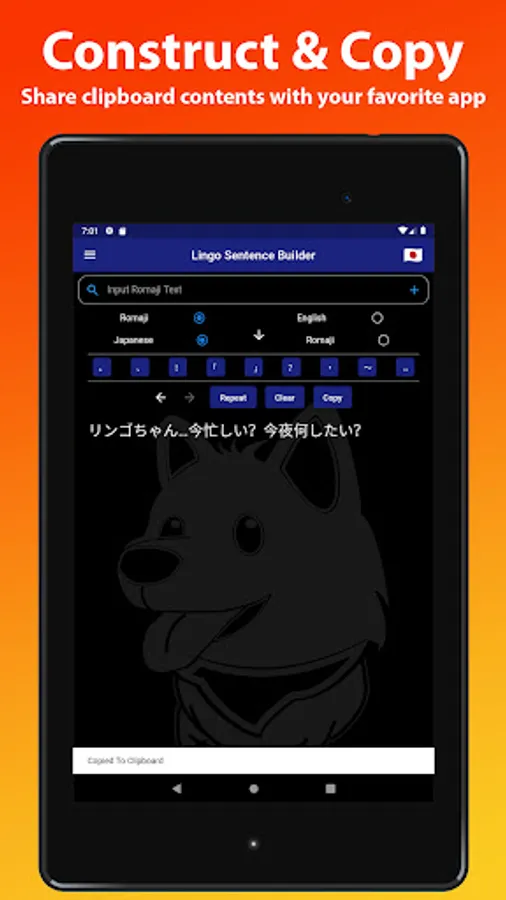 • Copy your creation to the device's clipboard using Lingo's Copy button.