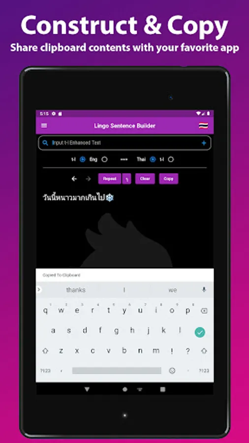 • Copy your creation to the device's clipboard using Lingo's Copy button.