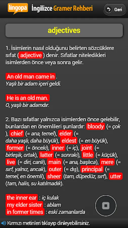 Lingop English Grammar, know-or information to refresh and reinforce the istediği- issue is a comprehensive audio reference and prepared for Turkish students who need a guide.