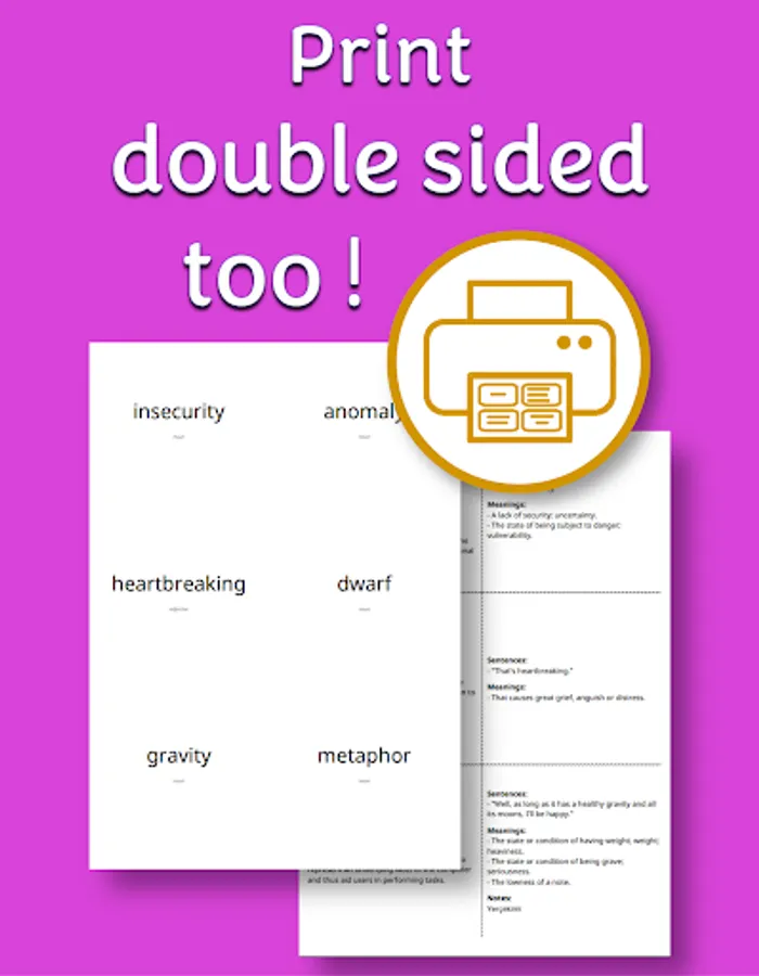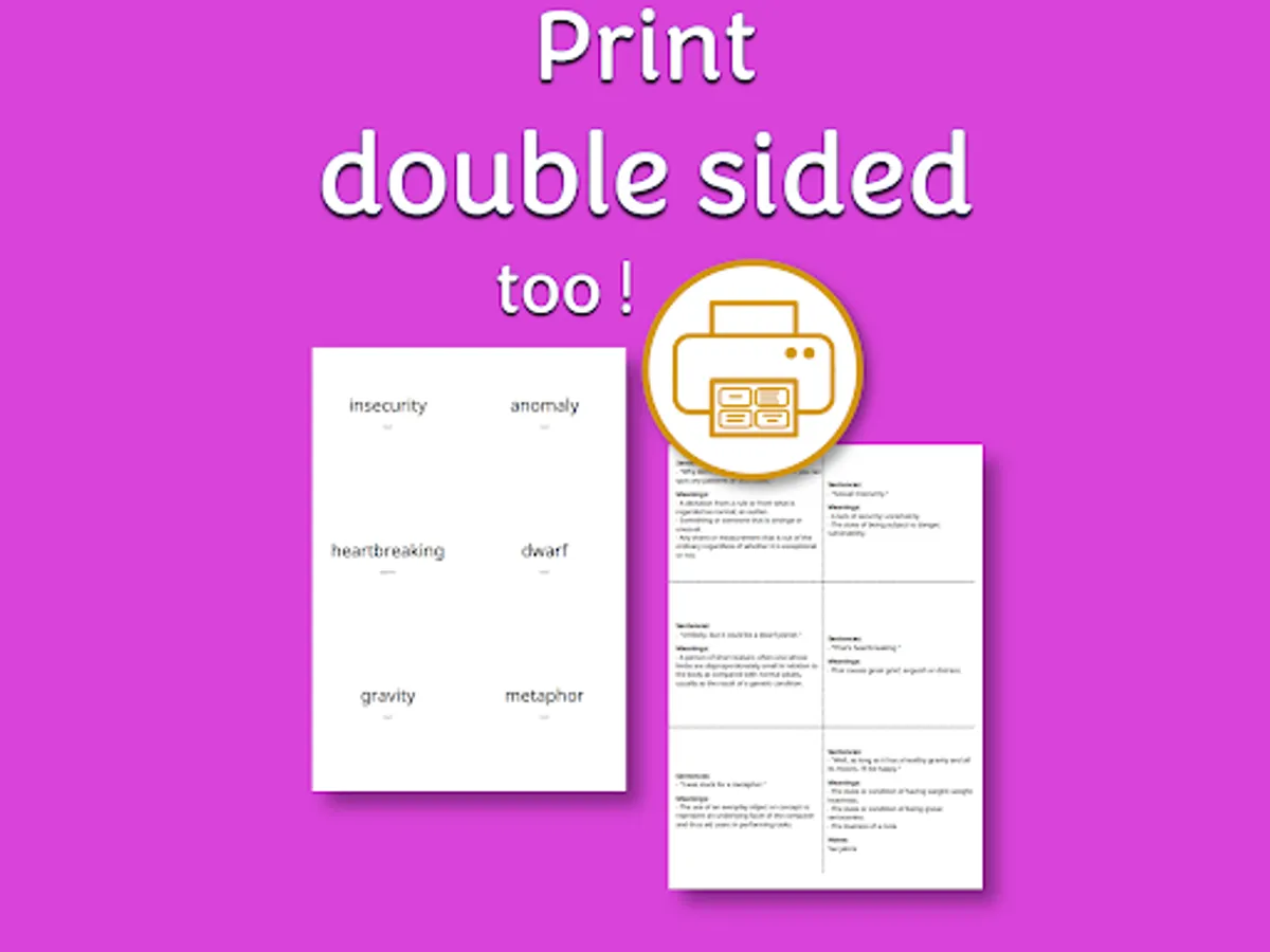 Master your knowledge with this powerful flashcard app. Create, organize, save and PRINT DOUBLE SIDED flashcards! Study with ease. Create custom decks, memorize effortlessly. Download now and unlock your learning potential!