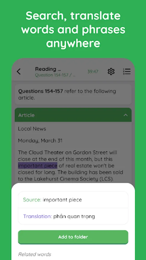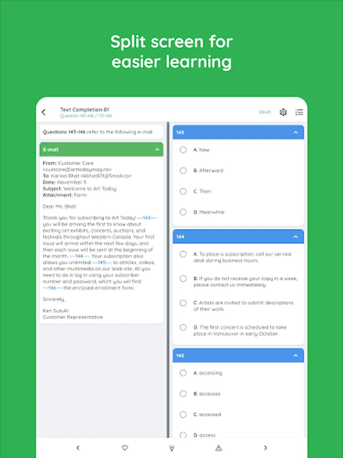 Lingoland TOEIC® helps you improve listening and reading skills in the format of the TOEIC® test. Lingoland TOEIC® is a useful and effective study application for TOEIC exam preparation. With many tests updated regularly, this application helps users improve their English language ability and confidently prepare for the TOEIC exam in depth.