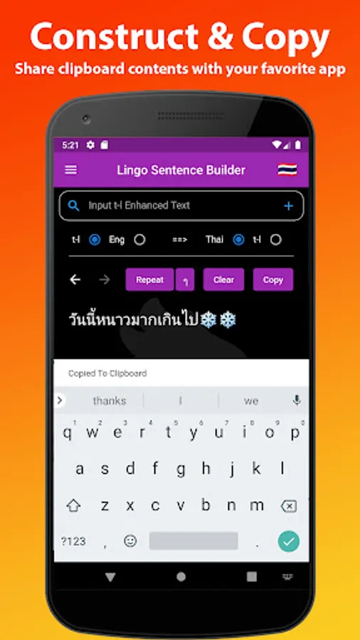 • Copy your creation to the device's clipboard using Lingo's Copy button.