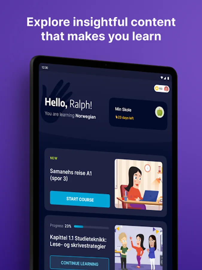 If you want to learn the Norwegian language, try out the Lingu app! You will find lessons from professional language teachers, games, instructional videos and you can submit your essays and audio recordings to your teacher for review.