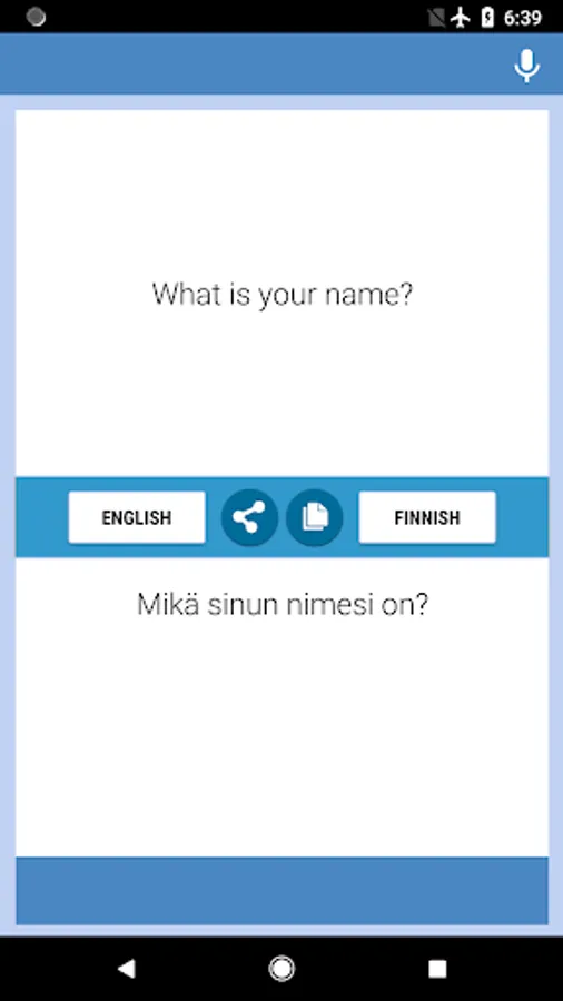 English-Finnish Translator app - free and easy to use. You can translate text and letters from English to Finnish and from Finnish to English back. The translate app conveniently to use with chats, messengers and social networks.You can use this converter at work, school, dating, while travelling or during business trips to improve your masterly of these two languages, also you can use this as English-Finnish and Finnish-English converter, interpreter, dictionary. Download Translation App and begin improve your language skills now!