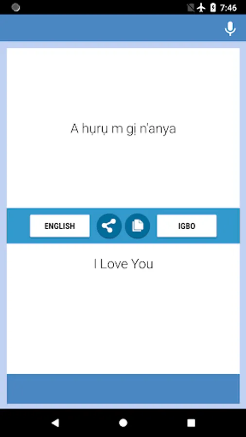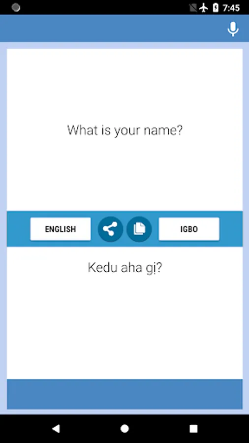English-Igbo Translator ngwa - n'efu ma dị mfe iji. Ị nwere ike ịsụgharị ederede na akwụkwọ ozi si na Bekee na Igbo na Igbo na Bekee azụ. Ị nwere ike iji onye ntụgharị a na-arụ ọrụ, ụlọ akwụkwọ, mkpakọrịta, mgbe ị na-ejegharị ma ọ bụ mgbe ị na-azụ ahịa iji meziwanye asụsụ gị nke asụsụ abụọ a, ị nwekwara ike iji nke a dịka English-Igbo na Igbo-English converter, translator, dictionary.