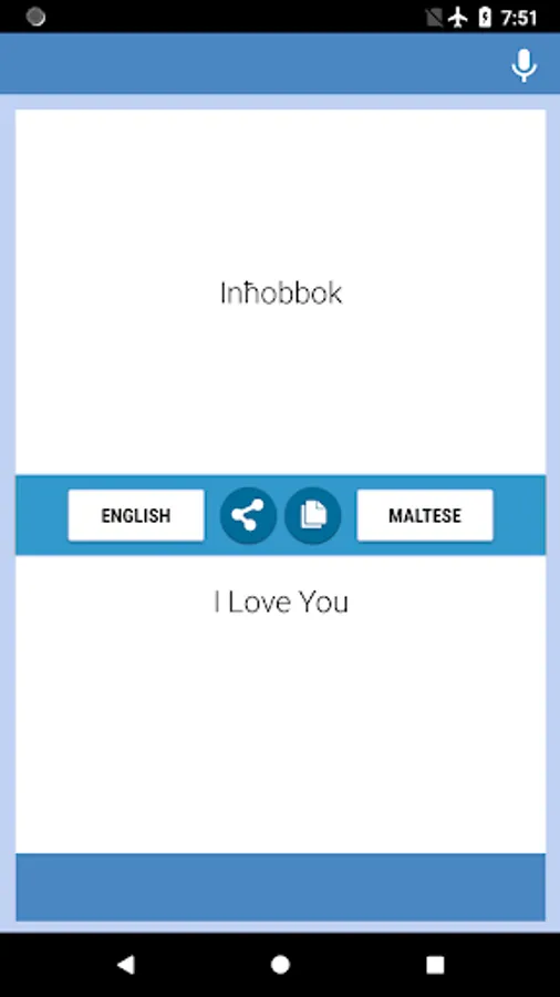 L-applikazzjoni tat-Traduttur Ingliż-Malti - ħieles u faċli biex tużah. Tista 'tittraduċi test u ittri mill-Ingliż għall-Maltin u mill-Malti sa l-Ingliż lura. Tista 'tuża dan il-konverter fuq ix-xogħol, l-iskola, id-data, waqt li tivvjaġġa jew waqt vjaġġi tan-negozju biex ittejjeb il-kaptan ta' dawn iż-żewġ lingwi, ukoll tista 'tuża dan bħala konvertitur, interpretu, dizzjunarju Malti.