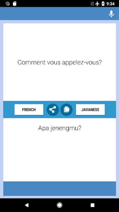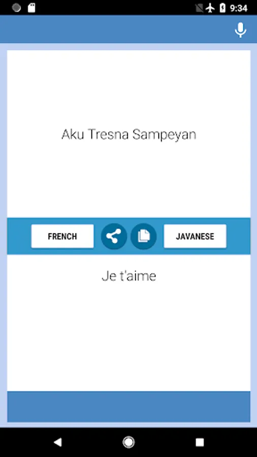 Aplikasi Basa Prancis-Jawa Translator - gratis lan gampang digunakake. Sampeyan bisa nerjemahake teks lan aksara saka basa Prancis nganti Jawa lan saka basa Jawa menyang basa Prancis. Sampeyan bisa nggunakake konverter iki ing karya, sekolah, dating, nalika lelungan utawa lelungan bisnis kanggo nambah masterly saka loro basa iki, uga sampeyan bisa nggunakake iki minangka converter, interpreter, kamus Prancis-Jawa lan Jawa-Prancis.