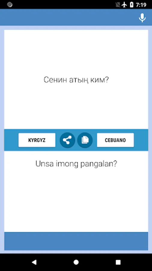 Kyrgyz-Cebuano Translator app - libre ug sayon nga gamiton. Mahimo mong i-translate ang teksto ug mga sulat gikan sa Kyrgyz ngadto sa Cebuano ug gikan sa Cebuano ngadto sa Kyrgyz. Mahimo nimong gamiton kini nga converter sa trabaho, eskuylahan, pakig-date, samtang nagbiyahe o sa mga pagbiyahe sa negosyo aron mapauswag ang imong batid sa duha ka mga pinulongan, mahimo usab nimo gamiton kini nga Kyrgyz-Cebuano ug Cebuano-Kyrgyz converter, interpreter, dictionary.
