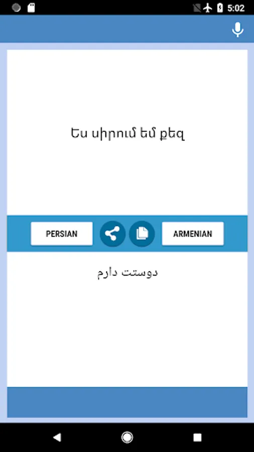 Persian-Armenian Translator app - free and easy to use. You can translate text and letters from Persian to Armenian and from Armenian to Persian back. The translate app conveniently to use with chats, messengers and social networks.You can use this converter at work, school, dating, while travelling or during business trips to improve your masterly of these two languages, also you can use this as Persian-Armenian and Armenian-Persian converter, interpreter, dictionary. Download Translation App and begin improve your language skills now!
