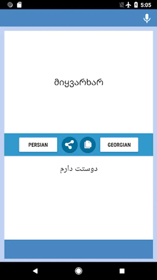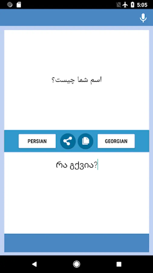Persian-Georgian Translator app - free and easy to use. You can translate text and letters from Persian to Georgian and from Georgian to Persian back. The translate app conveniently to use with chats, messengers and social networks.You can use this converter at work, school, dating, while travelling or during business trips to improve your masterly of these two languages, also you can use this as Persian-Georgian and Georgian-Persian converter, interpreter, dictionary. Download Translation App and begin improve your language skills now!