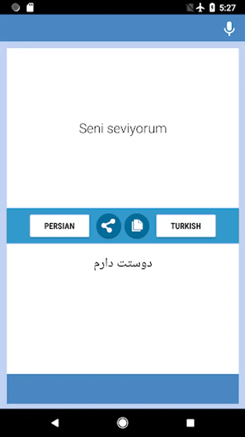 Persian-Turkish Translator app - free and easy to use. You can translate text and letters from Persian to Turkish and from Turkish to Persian back. The translate app conveniently to use with chats, messengers and social networks.You can use this converter at work, school, dating, while travelling or during business trips to improve your masterly of these two languages, also you can use this as Persian-Turkish and Turkish-Persian converter, interpreter, dictionary. Download Translation App and begin improve your language skills now!