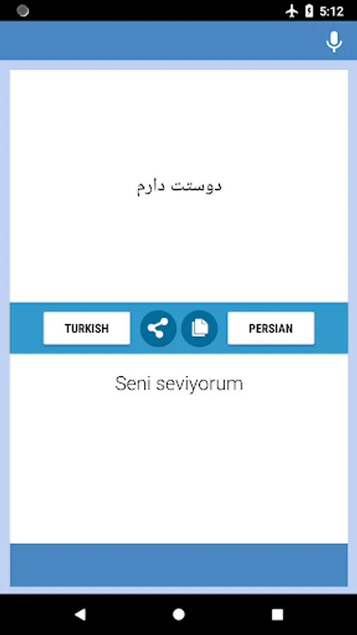 Turkish-Persian Translator app - free and easy to use. You can translate text and letters from Turkish to Persian and from Persian to Turkish back. The translate app conveniently to use with chats, messengers and social networks.You can use this converter at work, school, dating, while travelling or during business trips to improve your masterly of these two languages, also you can use this as Turkish-Persian and Persian-Turkish converter, interpreter, dictionary. Download Translation App and begin improve your language skills now!