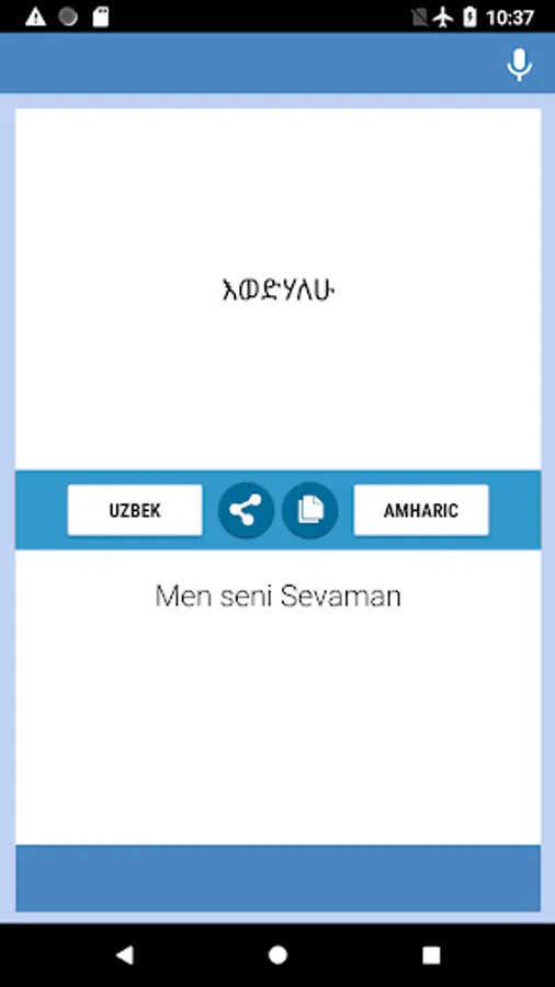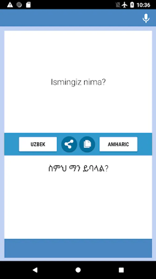 O'zbek - Amhar Tarjimon dasturi - bepul va ulardan foydalanish oson. Matn va harflarni O'zbek dan Amhar va Amhar dan O'zbek ga qaytarishingiz mumkin. Ushbu tarjimani suhbatlar, elchilar va ijtimoiy tarmoqlar orqali ishlatish uchun qulayroq qilishingiz mumkin. Ushbu konvertorni ishda, maktabda, tanishish paytida, sayohat qilish paytida yoki ish safarlarida ushbu ikki tilning mohirligini yaxshilash uchun ishlatishingiz mumkin, shuningdek, buni O'zbek - Amhar va Amhar - O'zbek konverteri, tarjimon, lug'at. Tarjima dasturini yuklab oling va hozirda sizning tilingizni takomillashtirishni boshlang!