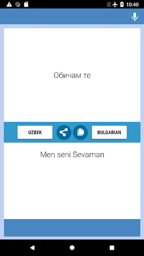O'zbek - Bolgar Tarjimon dasturi - bepul va ulardan foydalanish oson. Matn va harflarni O'zbek dan Bolgar va Bolgar dan O'zbek ga qaytarishingiz mumkin. Ushbu tarjimani suhbatlar, elchilar va ijtimoiy tarmoqlar orqali ishlatish uchun qulayroq qilishingiz mumkin. Ushbu konvertorni ishda, maktabda, tanishish paytida, sayohat qilish paytida yoki ish safarlarida ushbu ikki tilning mohirligini yaxshilash uchun ishlatishingiz mumkin, shuningdek, buni O'zbek - Bolgar va Bolgar - O'zbek konverteri, tarjimon, lug'at. Tarjima dasturini yuklab oling va hozirda sizning tilingizni takomillashtirishni boshlang!