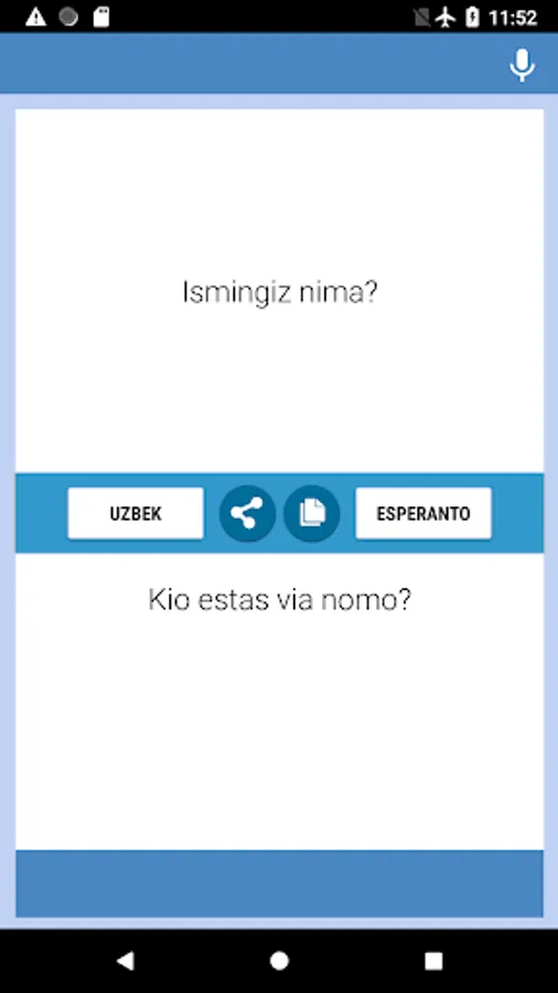 App Uzbek-Esperanto Tradukisto - senpaga kaj facila por uzi. Vi povas traduki tekston kaj literojn de Uzbekujo al Esperanto kaj de Esperanto al Uzbeka reen. Vi povas uzi ĉi tiun konvertilon en la laboro, lernejo, datado, dum vojaĝado aŭ dum komercaj vojaĝoj plibonigi vian majstrecon de ĉi tiuj du lingvoj, ankaŭ vi povas uzi ĉi tion kiel Uzbek-Esperanto kaj Esperant-Uzbek-konvertilo, interpretisto, vortaro.