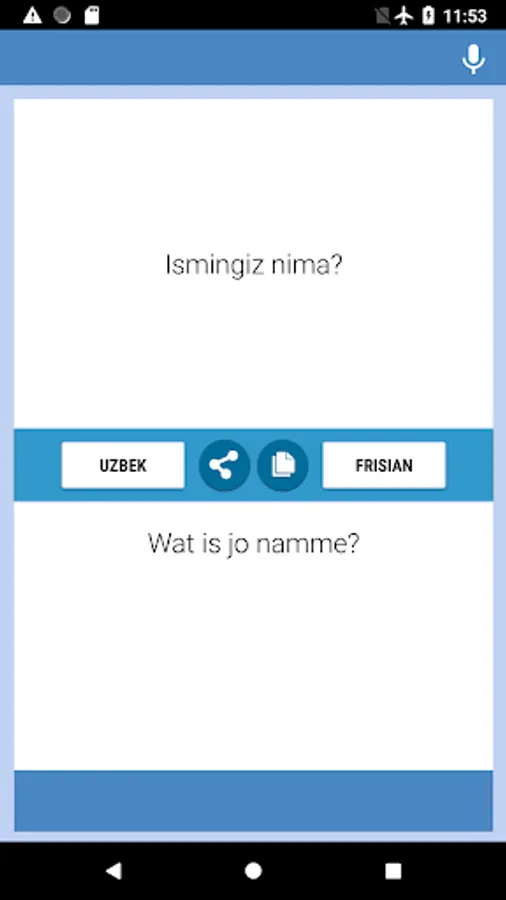 Uzbek-Frisian Oersetting app - frije en maklik brûke. Jo kinne tekst en letters oerskriuwe fan Uzbek yn 't Frysk en fan it Frysk oant Uzbek werom. Jo kinne dizze konvertear brûke by arbeid, skoalle, date, reizgje of yn 'e bedriuwsreizen om jo masterlik te ferbetterjen fan dizze twa talen, ek kinne jo dit brûke as Uzbek-Frisian en Frysk-Uzbek-converter, tolk, wurdboek.