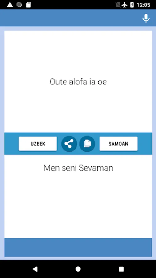 Uzbek-Samoan Translator app - e leai se totogi ma faigofie ona faʻaoga. E mafai ona e faaliliuina tusitusiga ma tusi mai Uzbek i le Samoa ma mai le Samoa i Uzbek i tua. E mafai ona e faʻaaogaina lenei tagata liliu mai i le galuega, aʻoga, tafaoga faamasani, aʻo femalagaaʻi pe o taimi o fefaʻatauaʻiga faapisinisi e faʻaleleia ai lou atamai i nei gagana e lua, e mafai foi ona e faʻaaogaina lenei gagana Uzbek-Samoa ma Samoa-Uzbek faaliliu, faaliliu, lomifefiloi.