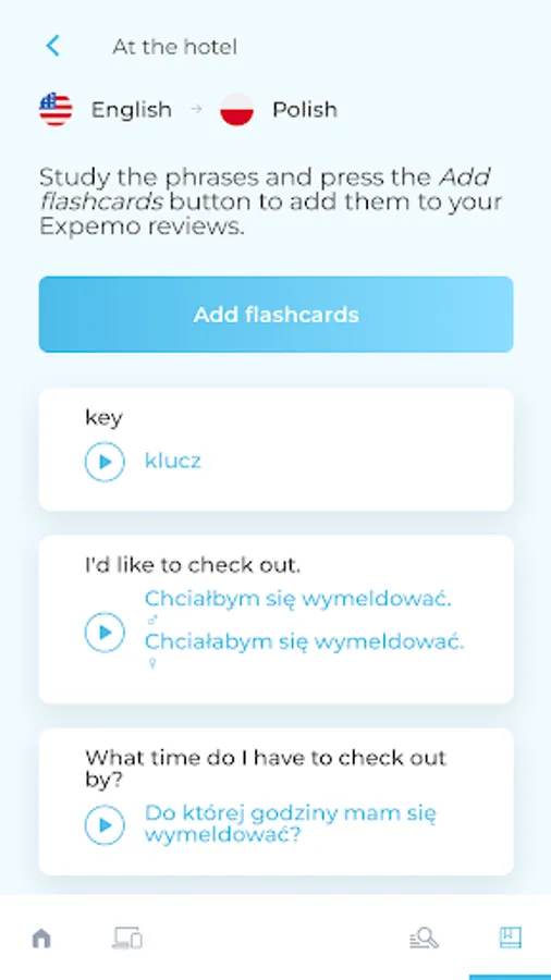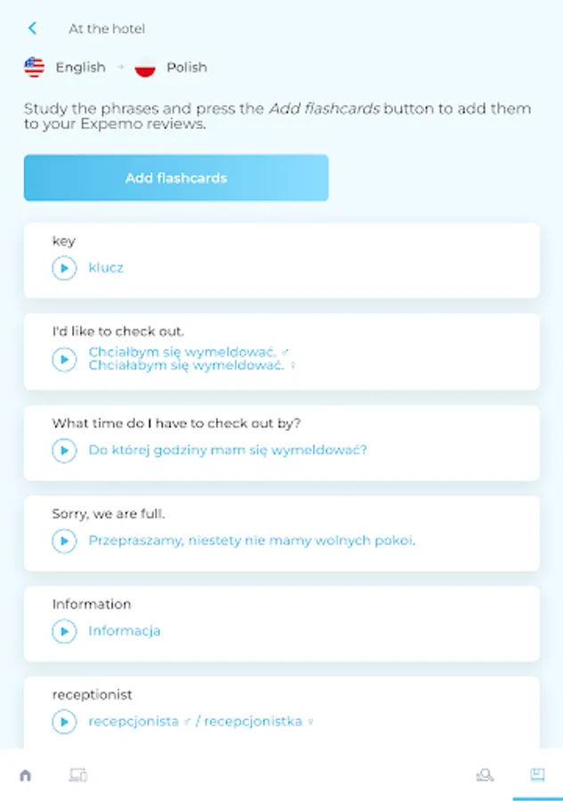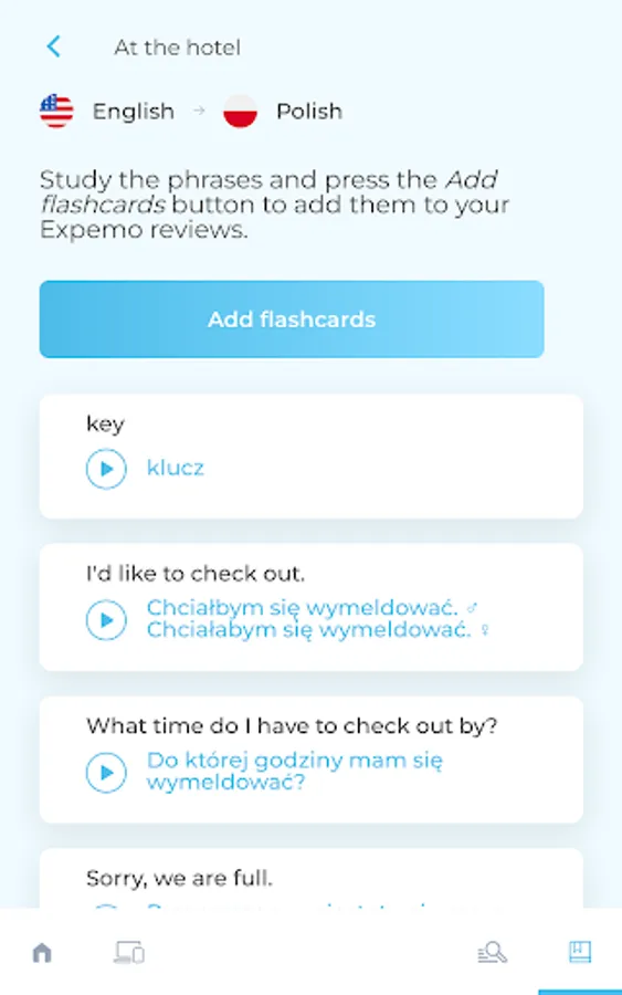 Use Expemo to review new words and phrases from our learning English or phrasebook pages.