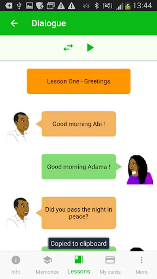 2 lessons offered and 76 words, phrases and sentences to memorize with the memorization tool based on SRS (spaced repetition system).
