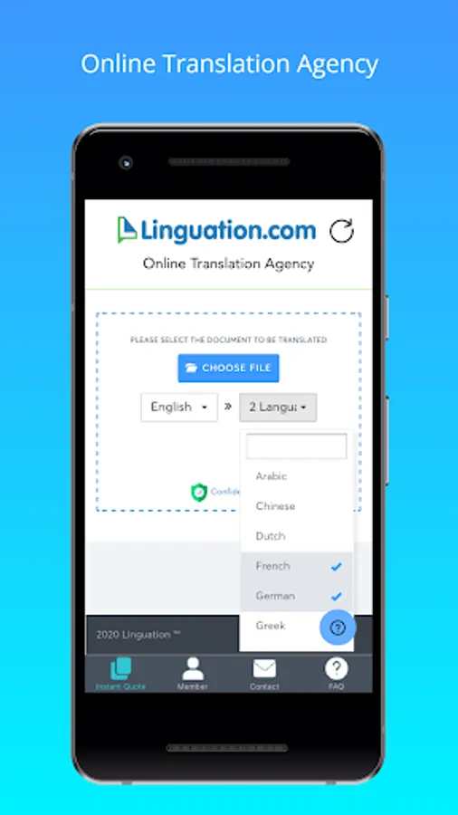 It is so easy! You need to go through three simple steps to complete your order. Upload your file, get an instant quote and delivery time. Select your type of payment and complete your translation order. We guarantee the best possible quote for your translation project.